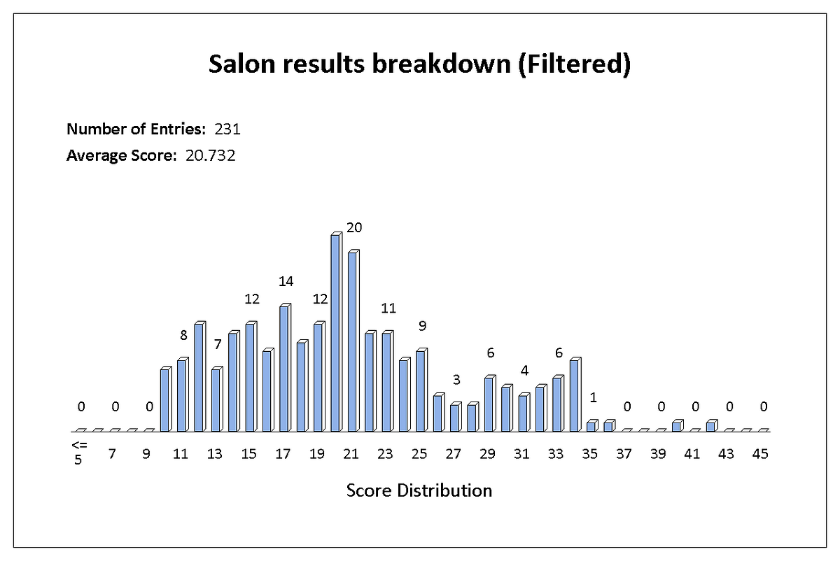 - Create a graph to display the score distribution of the salon or any filtered selection