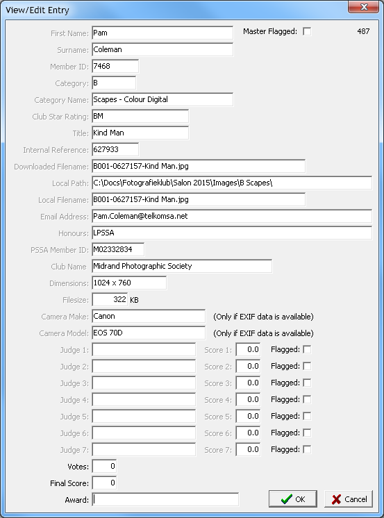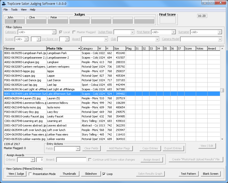 - You will then have to save the entries database file to the computer(s) or laptop(s) which will be used for the salon judging process, open the entries database file in TopScore and load the local image data. Once all the local image data is loaded you are ready to start with the judging process.